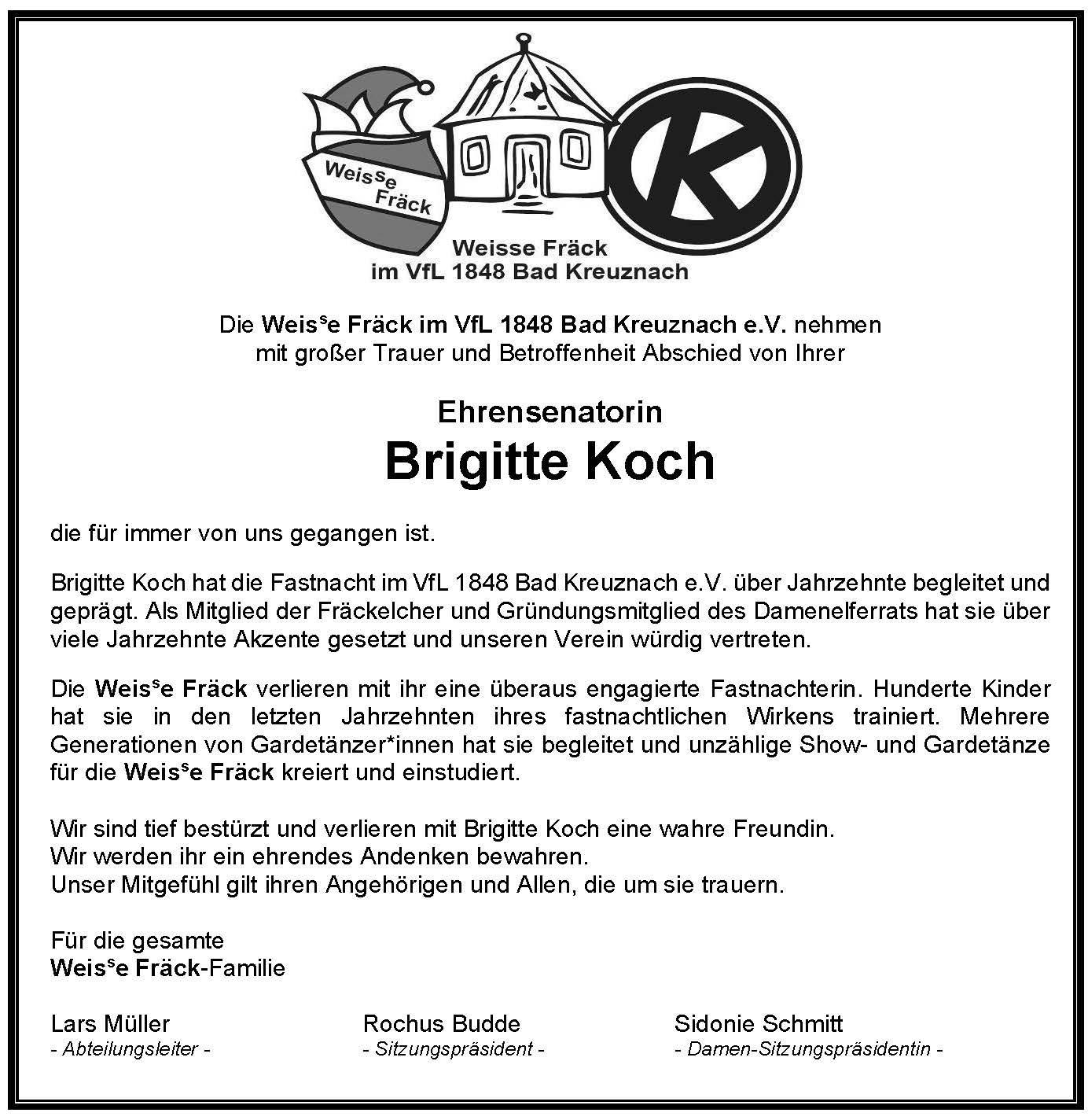 Die Weisse Fräck trauern um Brigitte Koch