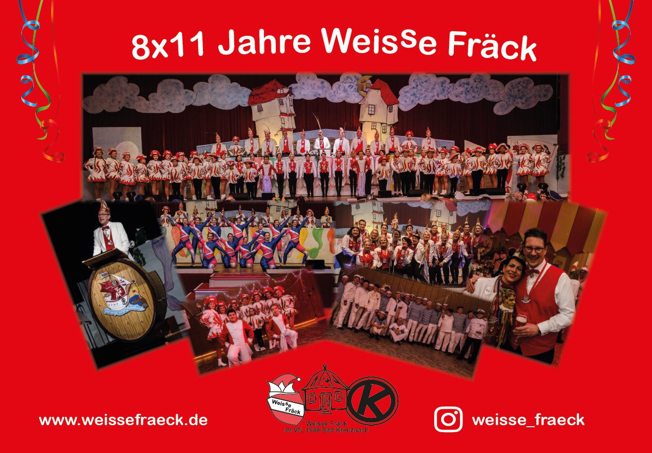 Endlich ist es soweit, die goldisch 5. Jahreszeit beginnt! Die Weisse Fräck feiern 8x11 Jahre